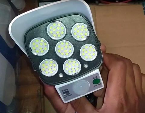 Когда кто-то появится в области, светильник автоматически включится. Заряжается от солнца в течение 4-6 часов. Фонарь предназначен для автономного освещения территории.