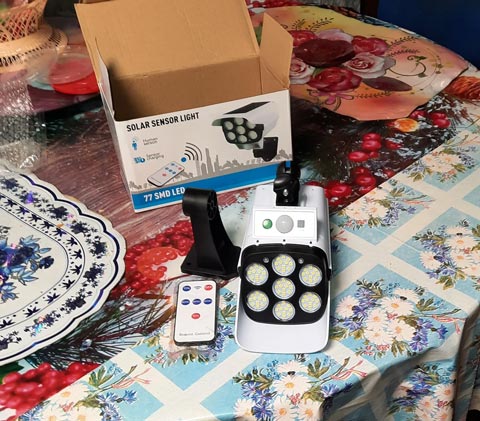 Светильник работает от солнечных батарей и поэтому Вам не нужно беспокоиться о его зарядке или подключении к сети. Датчик движения срабатывает с расстояния 5 метров, при угле обзора 120 градусов. Время работы при полном заряде аккумулятора от 8 часов.